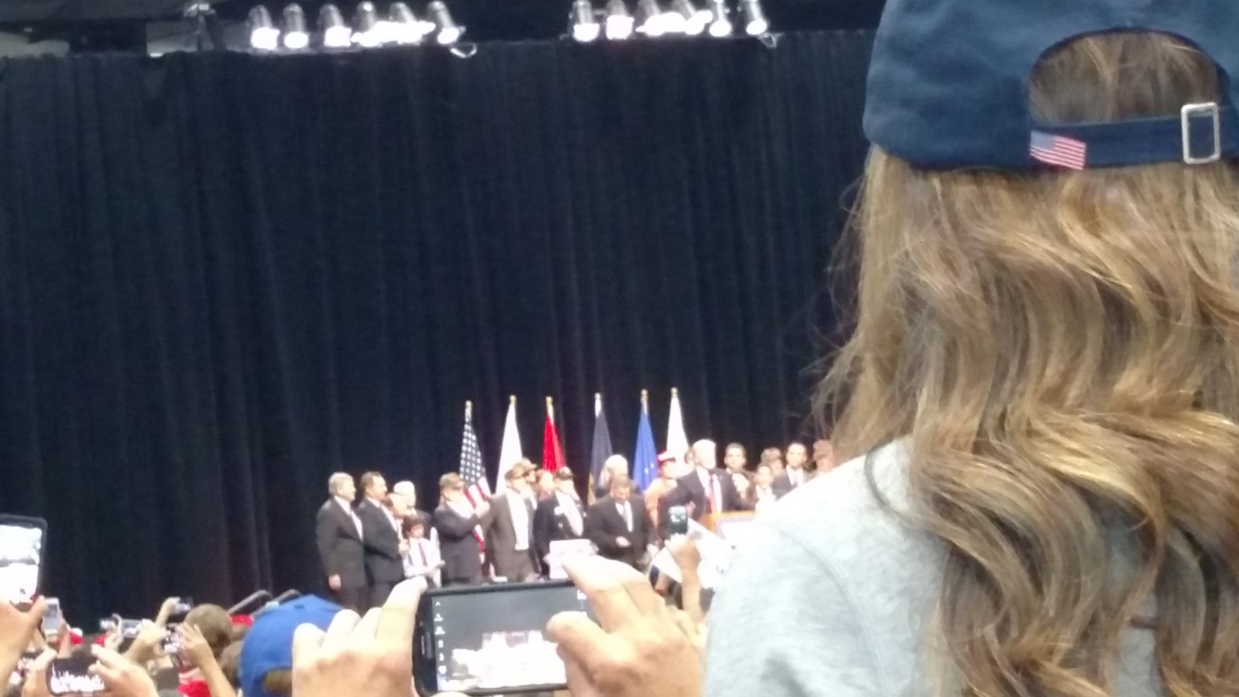 Donald Trump May 30, 2016 1748 × 983 Trump Rally San Diego May 2016 Donald Trump on stage This is the best shot I could get of Trump. There were a lot of people and the girl in front of me was sitting on a guy’s shoulders.