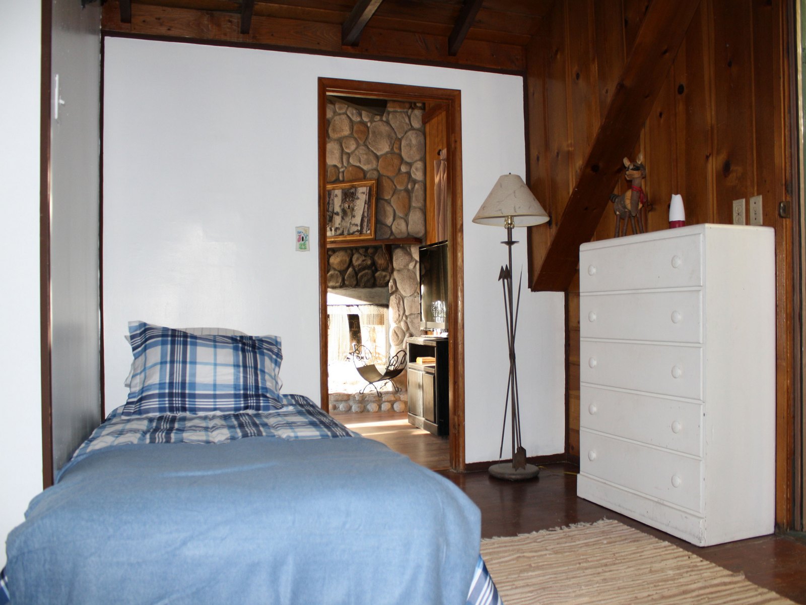 View of fireplace from bedroom